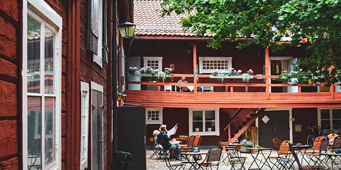 Krusagården. Under 1700-talet var Krusagården en betydelsefull handelsgård. På gården har det också funnits bränneri, krog och hökeri. Under 1800-talet drev Johan Holmström ett garveri här. 1945 var Krusagården till salu och det fanns långt gångna planer på att riva byggnaderna för att ge plats åt ett modernt varuhus. Tursamt nog gick köpet istället till byggmästaren Hans Hägg som lät renovera gården. Idag huserar föreningen Krusagården i den nordvästra delen. Den stora eken planterades av kung Gustav VI Adolf vid hans eriksgata år 1954. Slå dig gärna ned under eken och njut av kaffe och våfflor från serveringen under sommaren.
